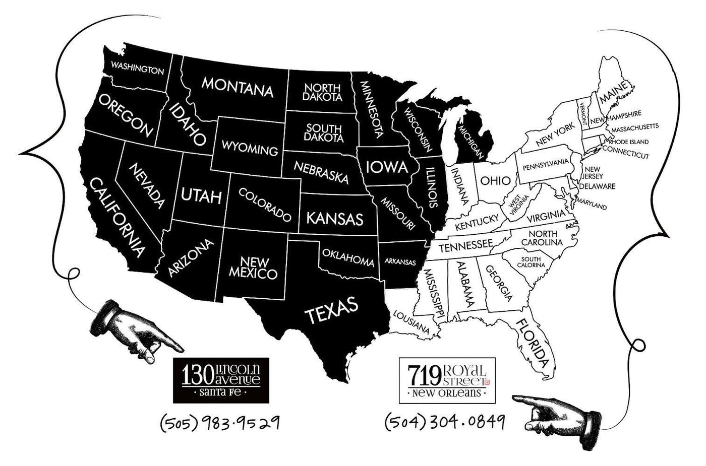 We use professional custom art packaging and ship from our galleries in New Orleans and Santa Fe using FedEx and UPS, and reputable crate carriers for large scale artwork.